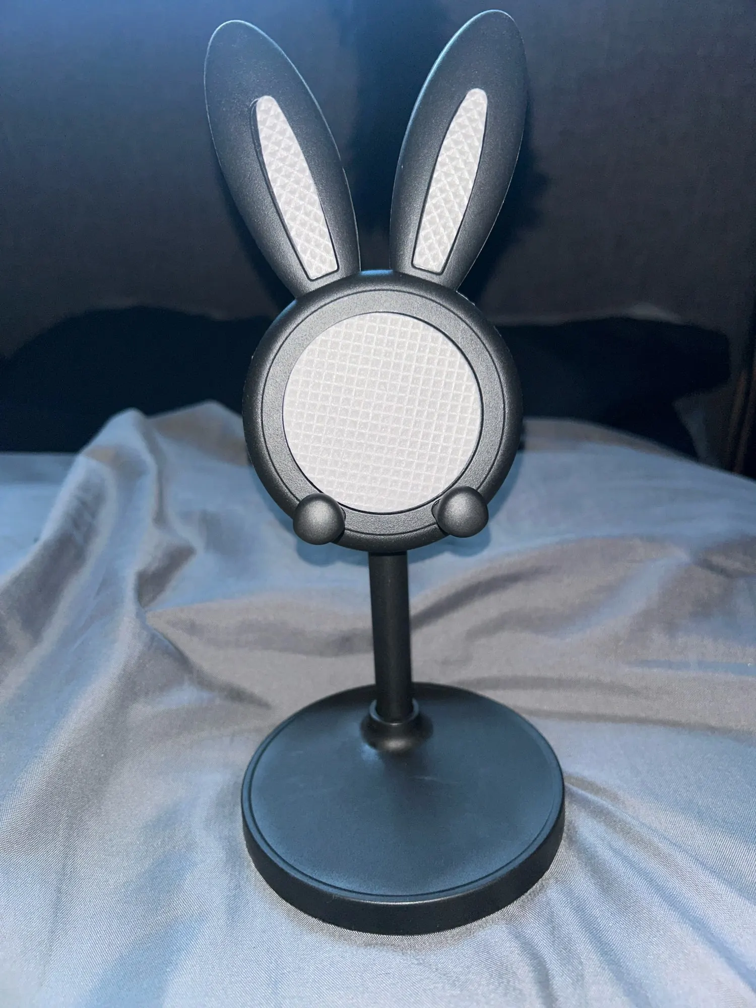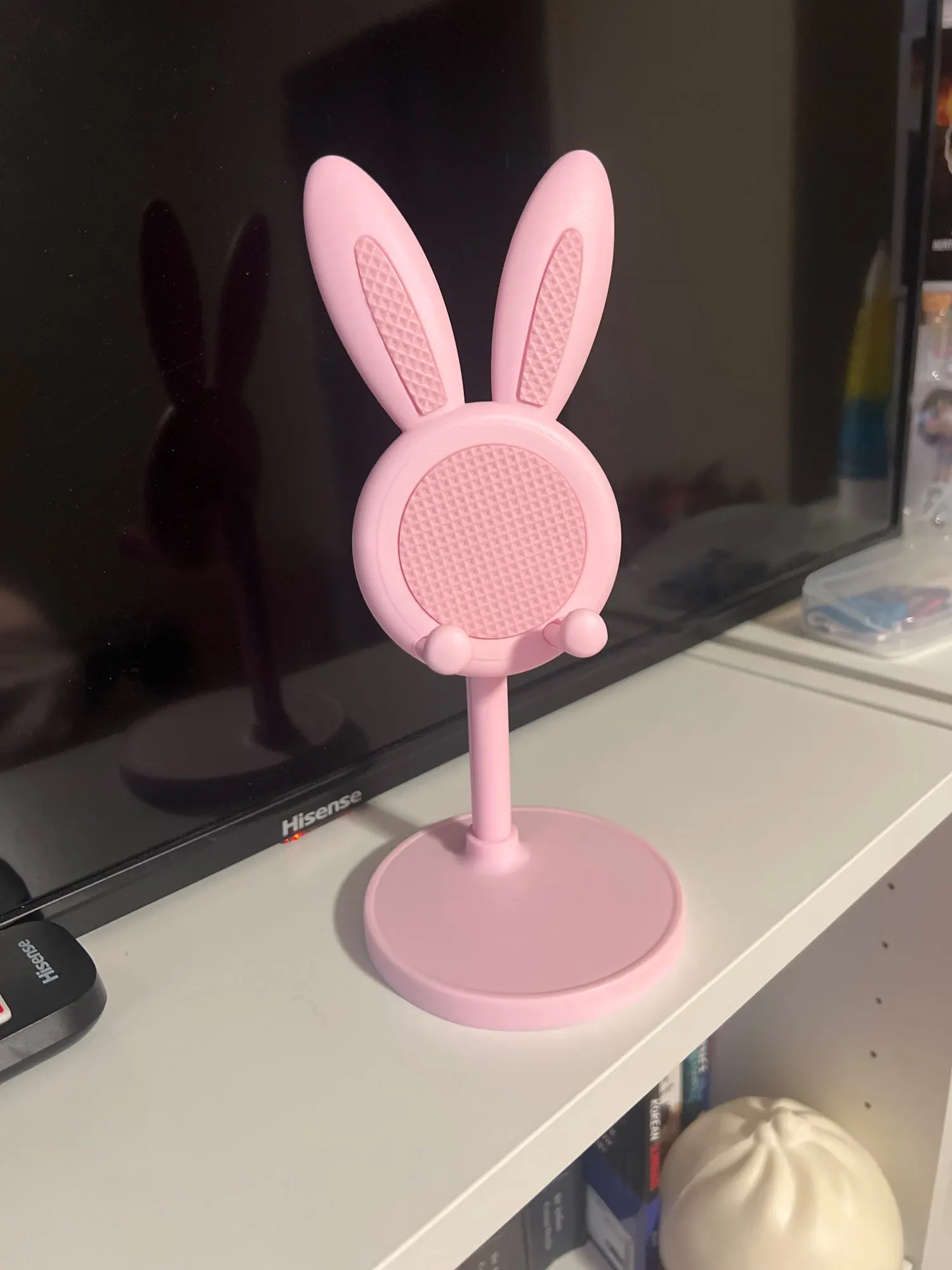 Add a touch of charm to your desk with this Cute Cartoon Bunny Phone Stand. Its adjustable design securely holds your phone, tablet and more, keeping your device at the perfect angle for hands-free use. Combining functionality with an adorable aesthetic, this bunny stand brightens your space while making video calls, watching shows, or reading more comfortable than ever.